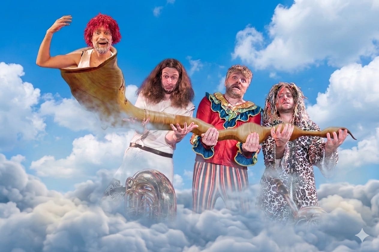 So haben Sie die bekannten Weihnachtslieder bestimmt noch nie gehört. Mal erklingt ein heimeliger Dreigesang, der an eine Allgäuer Weihnachtsstube mit warmem Holzofen erinnert. Dann wieder grooven zwei Tubas mit komplementären Schlagzeug-Beats und schaukeln sich zu echten Großstadt-Riffs hoch. Boogie, Gospel, Bach – hier ist so ziemlich alles möglich. Fünf herausragende MusikerInnen inszenieren ein Krippenspiel, das seinesgleichen sucht.