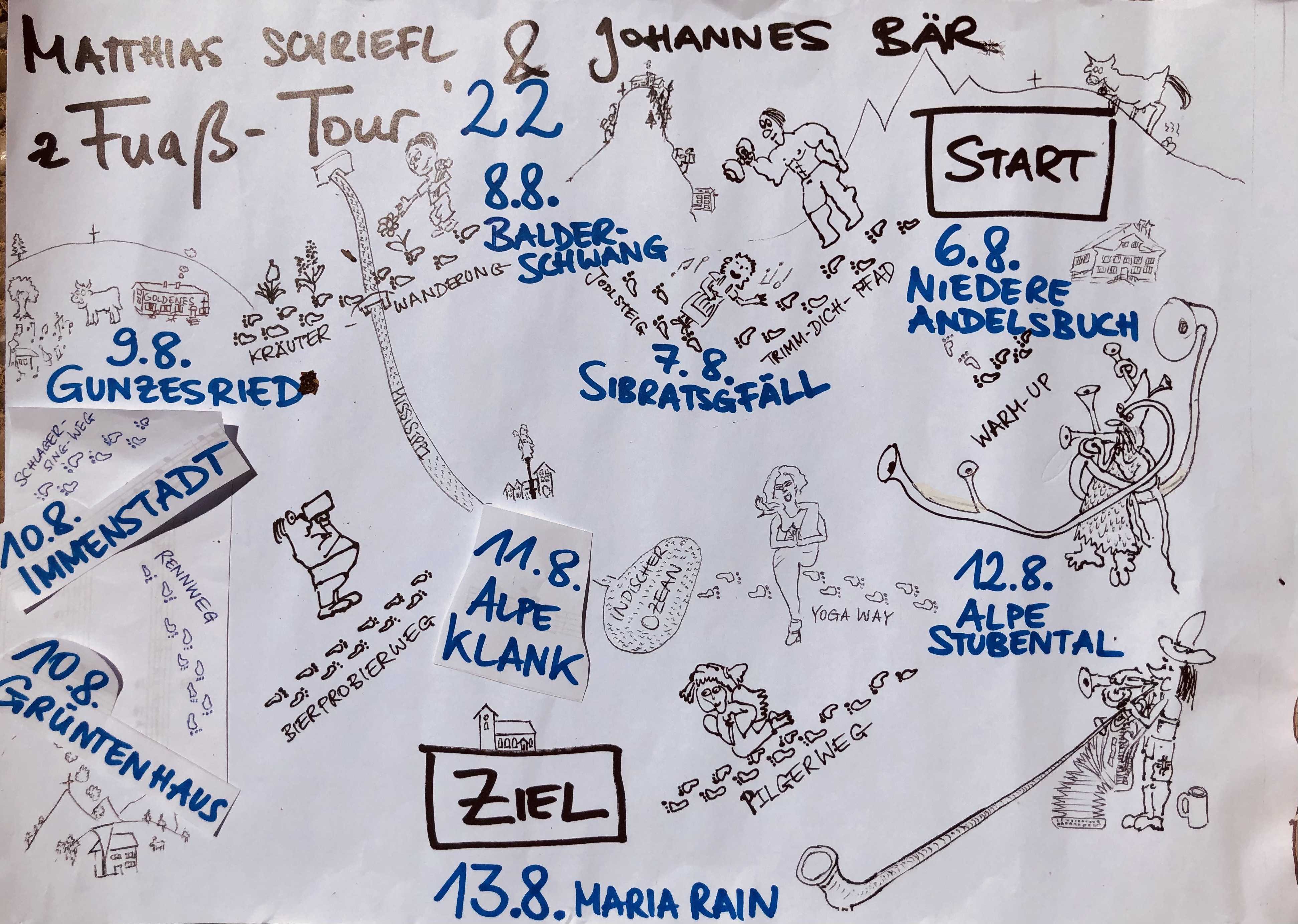 Den Flyer dürft ihr gern ausdrucken (die ersten zwei Seiten reichen) und im Bekanntenkreis verteilen! Falls ihr mitlaufen wollt, sind alle wichtigen Infos zu den Strecken anbei. Für manche STrecken gibt es zwei Alternativen. Im Zweifelsfall gehen wir die längere, aber schönere Alternative. Es ist auch möglich, dass wir uns in zwei Gruppen aufteilen, und die eine den einfachen Weg geht, die andere den längeren.